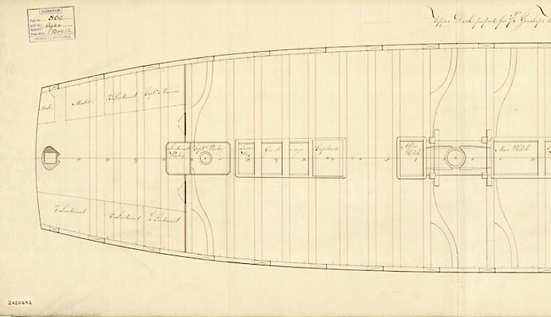 На картинке С4 между полотняными переборками 5 и кают-компанией 9, 10 есть поперечная переборка. Судя по разрушенной модели Суперб из Гринвича, переборка была простая, и между каютами 5 и 9, 10 в ней было по одной двери с каждого борта