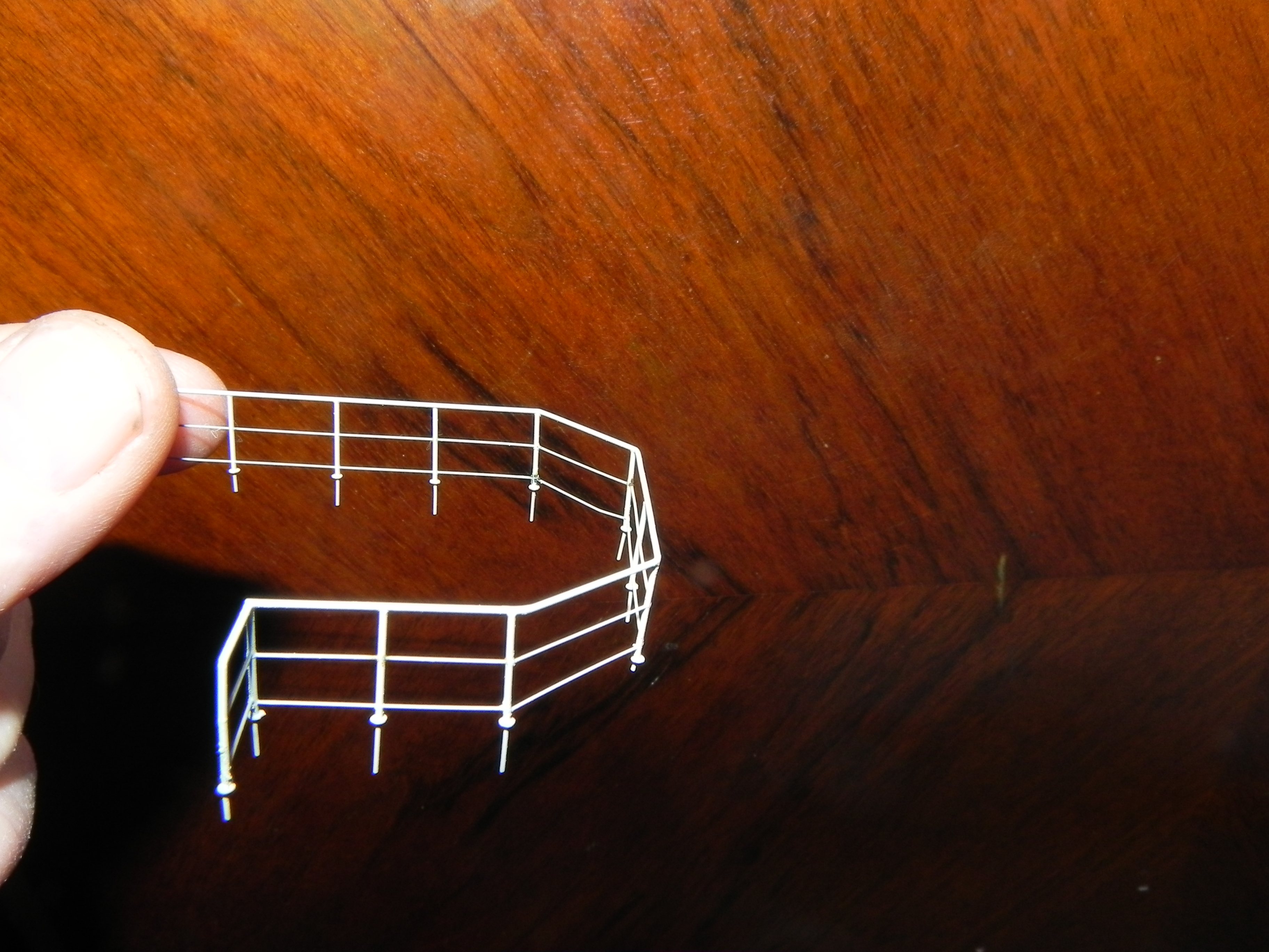 Если будете делать веревочный леер на боковых трапах, не используйте белые нитки - только светло-серые или грязно-белые, если позволите. По правилам масштаба, цвета тускнеют, в частности, белый приобретает серый оттенок.