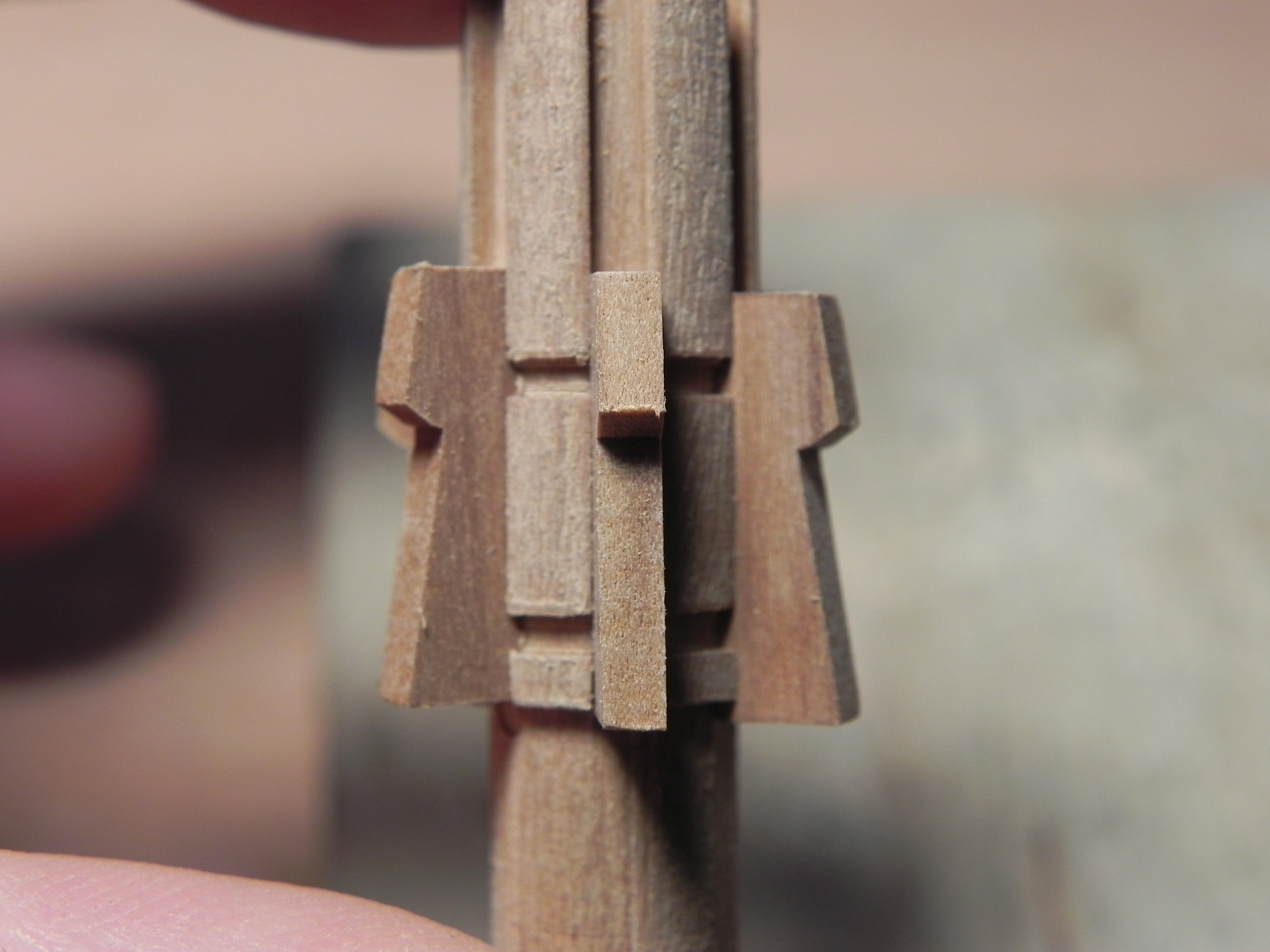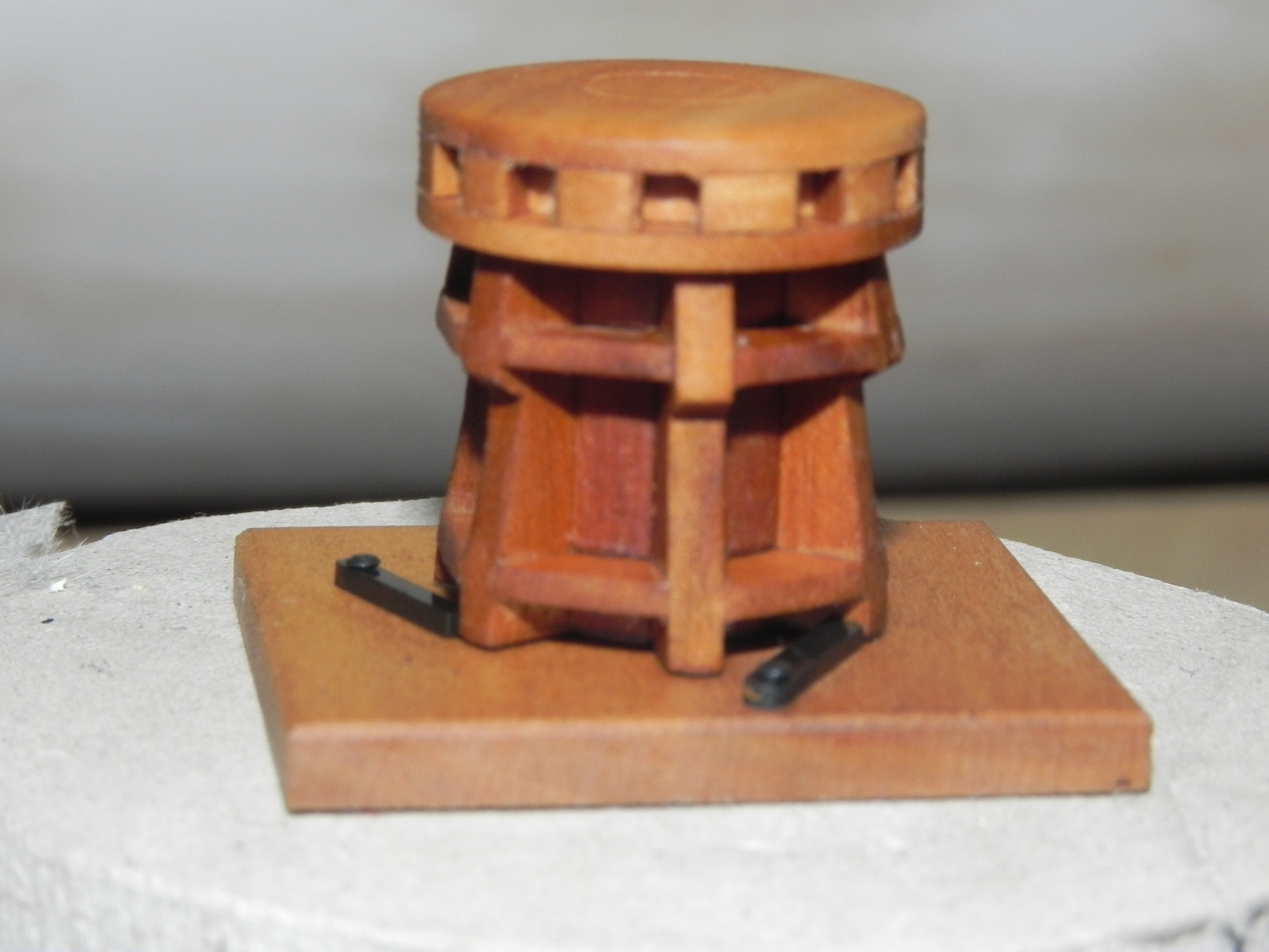 Мостики "раннего типа" ставились на железные кницы. Тонкие, они (кницы) практически не видны. На мостики устанавливались съёмные скид-бимсы для шлюпок, в вилки, а Амати предлагает внутренние скидбимсы, как составную часть каркаса мостиков. (как на современной Виктори)