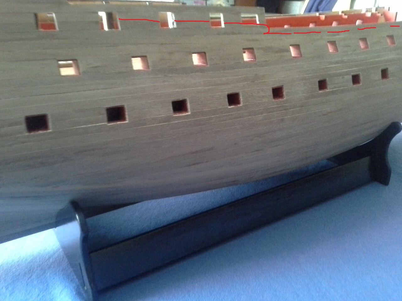 Игорь, доброе утро. Вот фотки. Уменя немного другое.Переношу на борта линии обреза борта,кое что не сходится.Как совсем проясниться,буду просить совета.Палы латунь, примерно 1мм,зачернил.