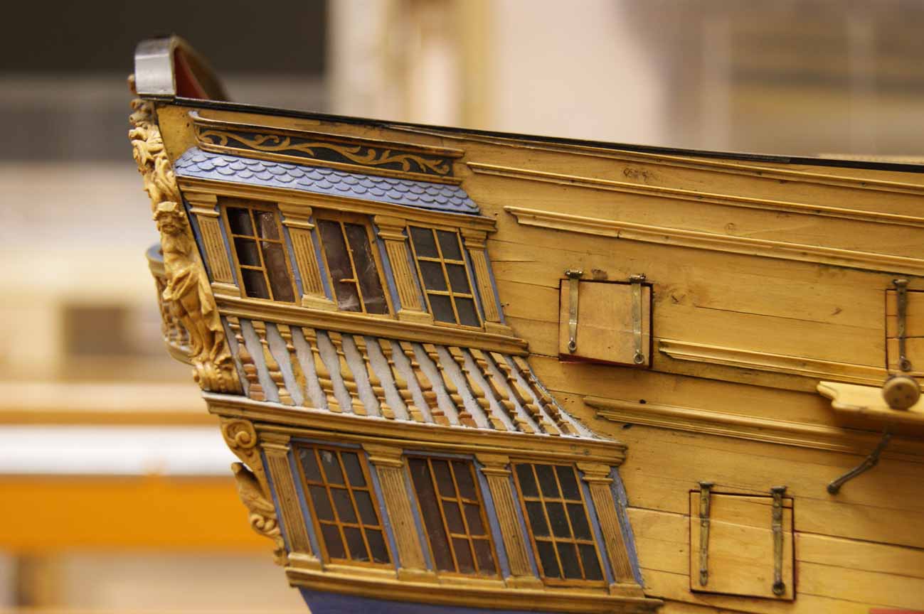 Итак, сделайте переборки и не ставьте их пока, как и орудия. Сделайте оба шпиля (один у вас готов, я помню). Их тоже пока не ставьте. Сделайте корабельную печь, или переборки камбуза. Следующий этап: сделайте рым-болты для пушечных талей и брюка для пушечных портов. Желательно, по всему опердеку, как минимум же - в районе шкафута (то есть, между баком и квартердеком). Вот, при установке рым-болтов вы и будете постоянно трогать корпус и рисковать его запачкать.