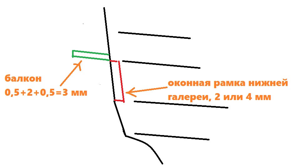 Полученный трёхслойный сэндвич (палуба балкона, балкон, облицовка) будет равен по толщине фут-реельсу. Допустим, балкон у нас 2 мм, палуба 0,5 и облицовка 0,5мм. Получилось 3 мм. Глядя на фото музейных моделей, вы скажете, что фут-реельс что-то у нас худоват получается. Всё в порядке, на самом деле. Тут есть два момента.