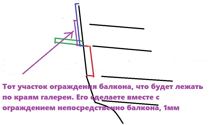 Вот это и была основная переделка, от которой мы будем плясать в сторону творчества. Сейчас самое интересное. Часика на три работы. Возьмите деталь балкона. Вклейте балкон на место, не забудьте, что у этой детали есть погибь.