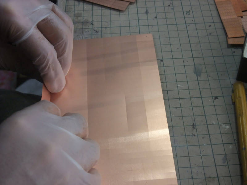 Пластины от Амати слишком толстые, поэтому фирма предлагает приклеивать их встык, а не в нахлёст. Этим мы и воспользуемся. Кстати, истинные размеры медных пластин были 1219х356 мм, по другим данным, 1219х381 мм. Нахлест осуществлялся на 37 мм.
