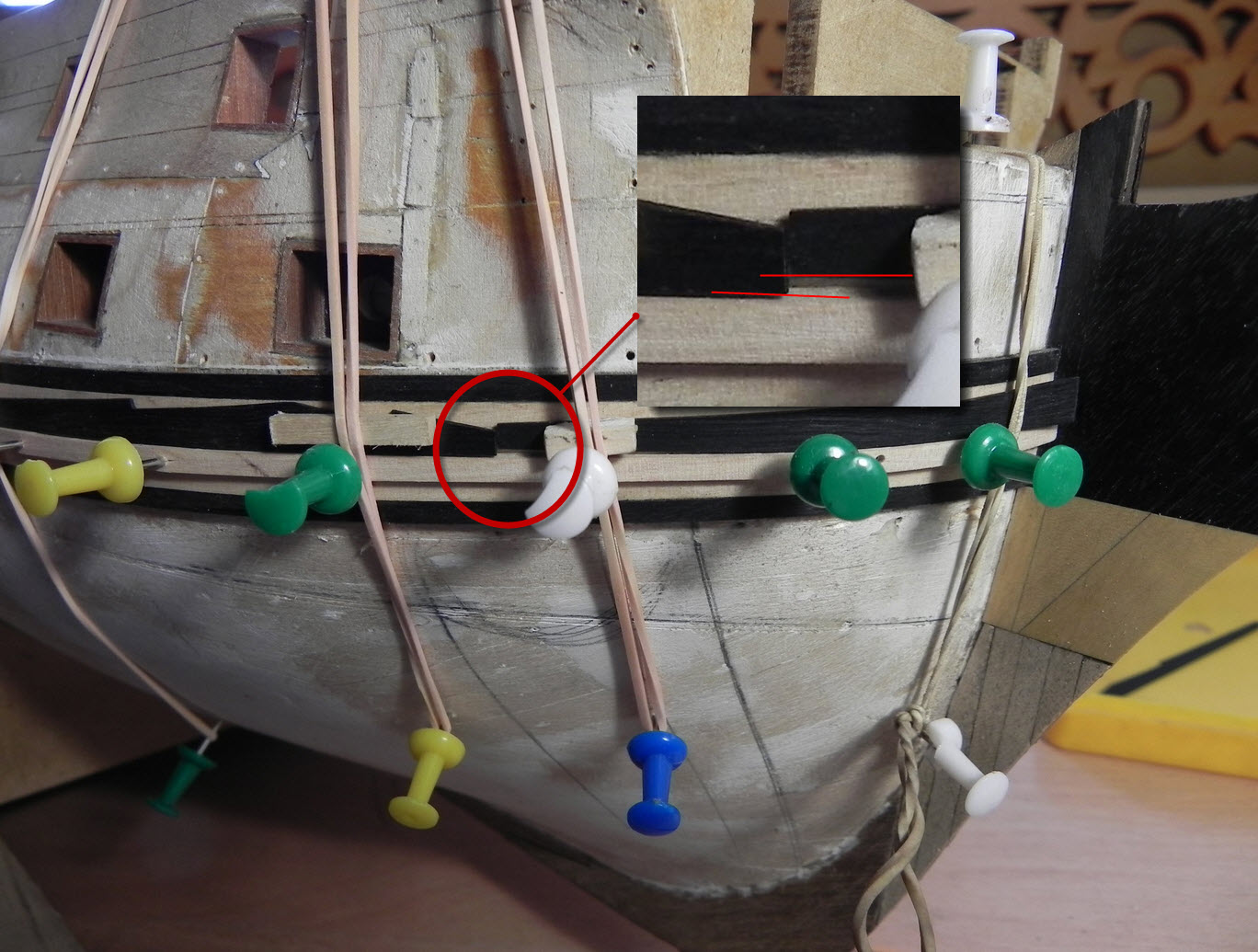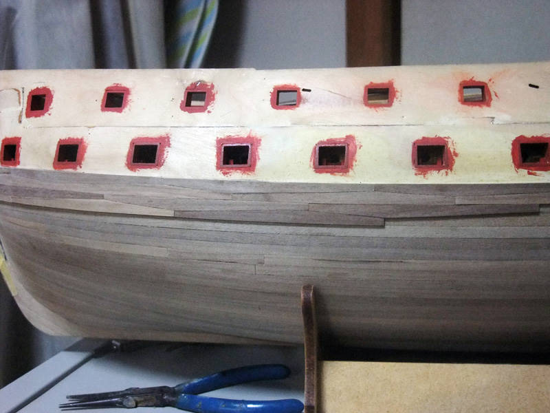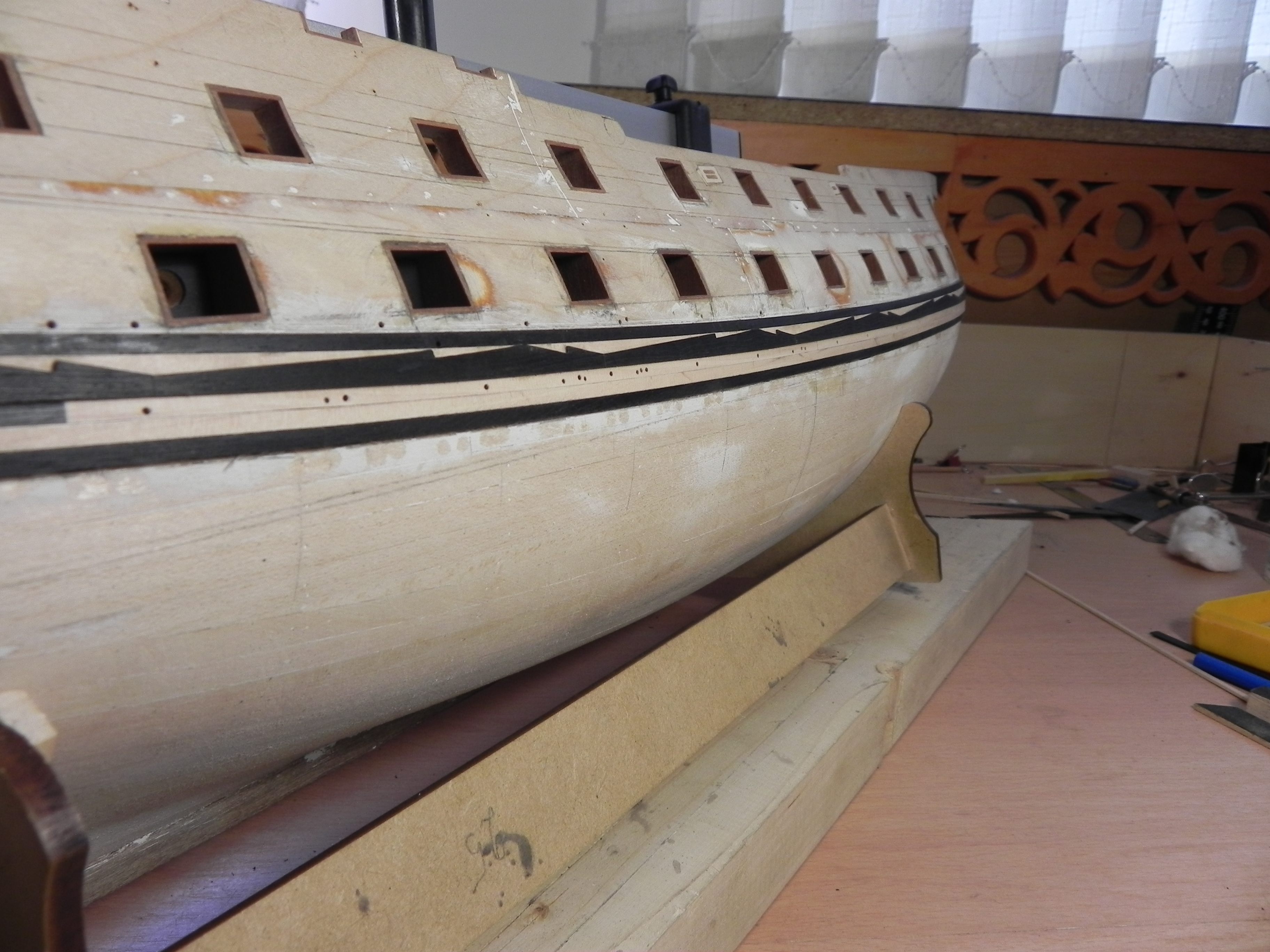 И ещё не очень нравится что получилось в районе кормовых пушечных портов.''коротышки'' может попробовать разложить нестандатные штуки, (всего две штуки)