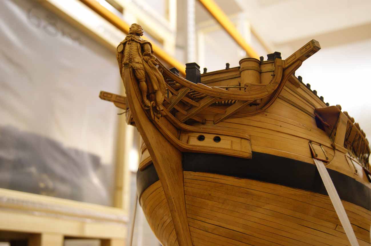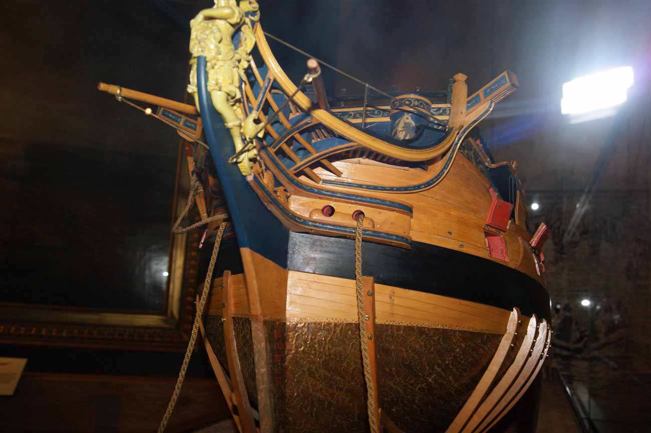 На моделях из Гринвича первые поясья обшивки выглядят"чинно-благородно": заужение реек очень плавное и небольшое, почти незаметное.