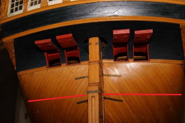 Если честно, я не вижу никакой проблемы. На мой взгляд, обшивка ложится очень хорошо. То, что даже на систершипах обшивка лежит под разными углами, хорошо заметно при сравнении вот этих двух моделей: лже-Беллона, сделанная примерно в 1778 году, и Уорриор, сделанная в 1780 году. Обе модели показывают систершипы класса Дублин - класс, которым никто не занимался и не модернизировал с той поры, как программа развития кораблей класса Дублин была закрыта за бесперспективностью. Поэтому все "дублины" на удивление схожи, в отличии от класса Беллона, пустившего буйные ответвления.