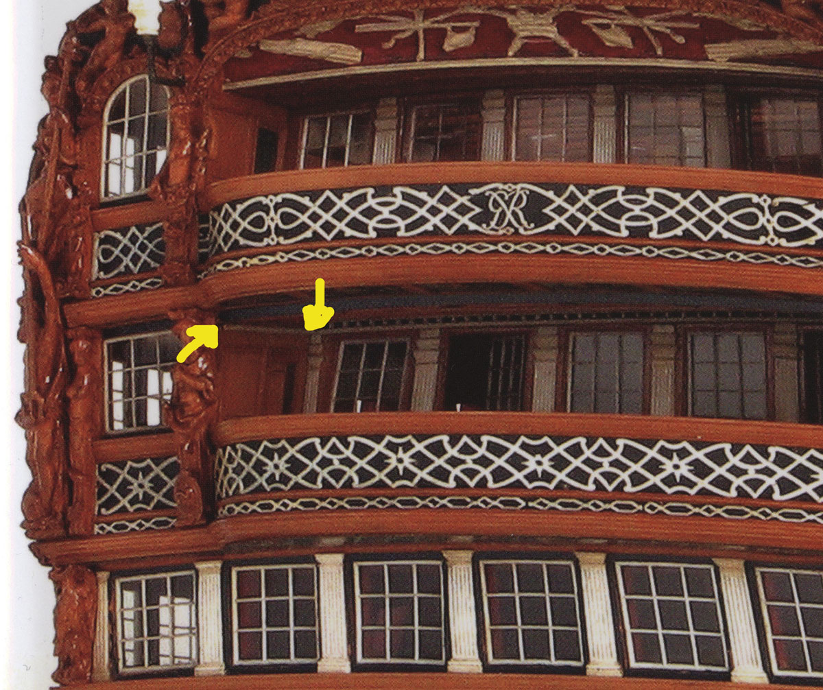 Ещё один момент. Я предполагаю, что на кормовой галерее окна на Авангарде могли иметь сдвижные рамы, как на Виктори или как на Беллерофоне. На боковых галереях рамы были откидные, поднимались "внутрь, вверх", примерно на 30 градусов и стопорились упором.