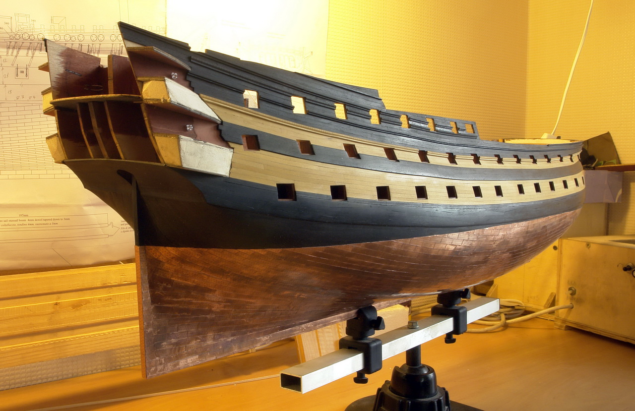 Я бы всё-таки попробовал уговорить Мишу не использовать медь, а так же продолжить использовать в качестве чистовой обшивки, а так же для деталей кормы и гальюна самшит. Самшит неплохо прикупить с запасом. Если у Миши временные трудности, то я могу помочь - у меня к НГ премия в заначке, как раз на нужды моделизма держу... нефть падает, пропадает заначка прямо на глазах. "Святые идеи моделизма" - как выразился мой друг, "...нужно поддерживать". Модель Миши того стоит, чтобы её поддержать. Если у Миши сберкарта - дело пяти секунд. Отдаст потом, (куда ж денеццо!) Пока самшит есть, надо брать! Грушу, как Миша уже делал, можно использовать на внутренние стенки фальшбортов надстроек и на верхнюю часть внешней обшивки - там, где фризы (под покраску, если граба не хватит, плюс красный традиционный английский фриз на ахтердеке).