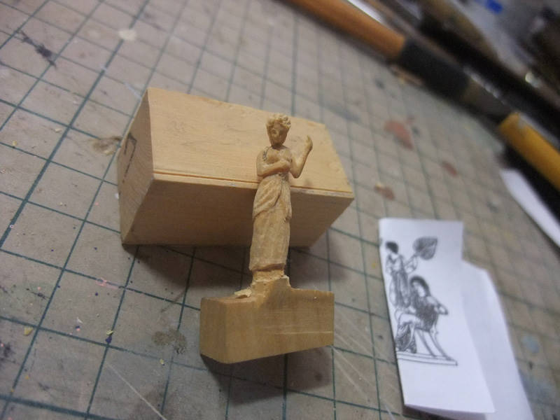 (На фото - самшит, расходуемый без всякой экономии и сожаления. На втором фото - кариатида на боковую стойку квартописа в 1/72)