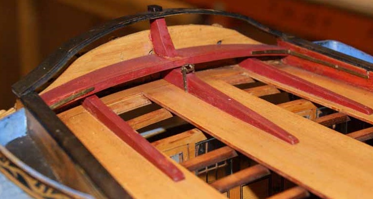 На следующем фото. Мы говорили о световых люках ахтердека, по форме условно разделившихся на "кирпичики" и "домики". Вот, очень интересный вариант светового люка "домик", примерно, 80е годы 18 века.