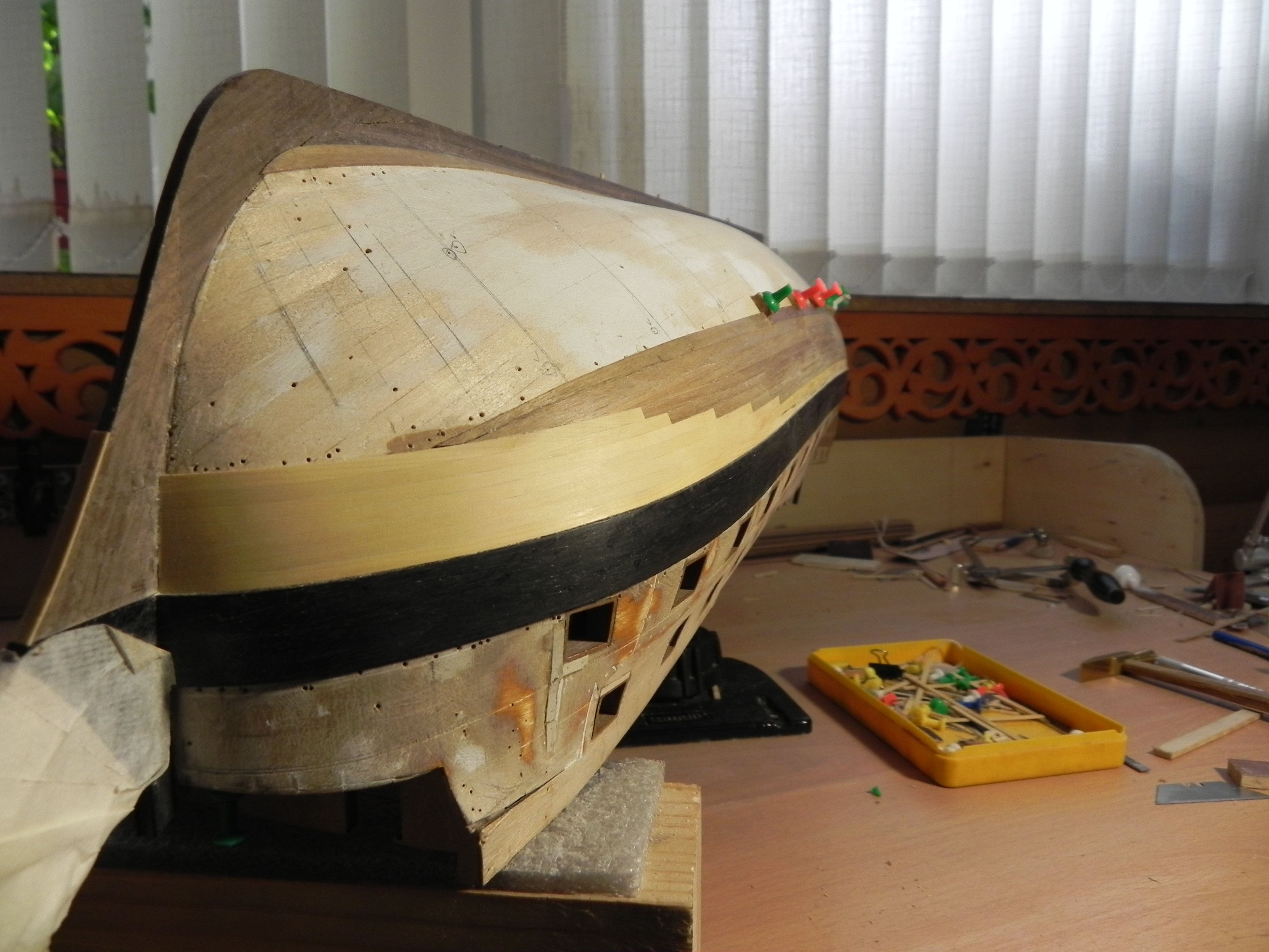 Дела налаживаются. Всю чистовую обшивку, что готовил под медь отодрал. Взялся размечать под обшивку без меди,то есть чисто самшитом. пока этим занимался пару недель- думал, что все-таки лучше. И понял , что не смогу сделать хорошо, что бы самому понравилось. И вернулся к первоначальному варианту с обшивкой медью. Сейчас обшиваю снова под медную обшивку.