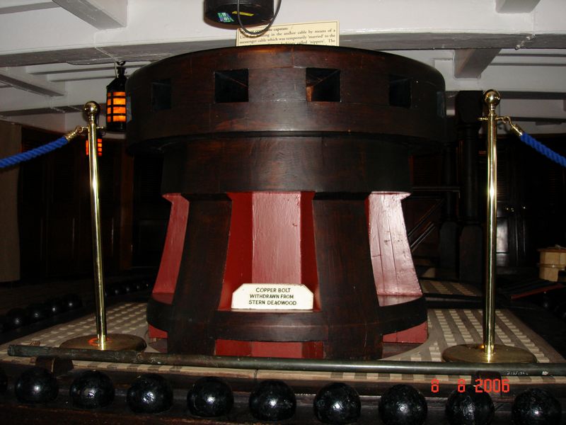 Совершенно верно, шпиль совсем другой по конструкции, чем предлагает Амати. Настоящий шпиль был он точно такой же, как на "Виктори", и уж точно не располагался "просто на палубе", как предлагает Амати. На фотографиях моделей из Гринвича хорошо заметно, что шпиль стоит на прямой (не имеющей погиби, как палуба и рустеры люков) плите, а эта плита может быть как в общем комингсе с люком, так и отдельно. Ось шпиля, если не ошибаюсь (давно дело было, а чертежей под рукой нет), обозначена фирмой Амати верно - это легко проверить по фотографиям моделей из Гринвича: ориентируясь по пушечным портам. Так же на фото моделей видно, сколько секций и какого они размера в каждом люке.