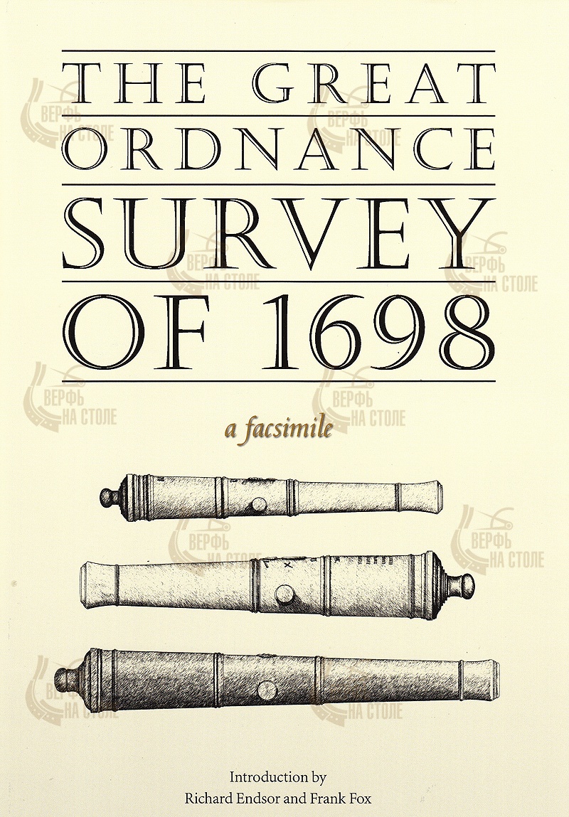 В конце 1690-х годов в Англии было проведено обследование и перепись всех больших пушек Королевского Флота и батарей береговой обороны. В результате появился почти пятисотстраничный отчет, содержащий размер и идентификационный номер всех больших пушек на борту строевых кораблей, хранящихся на верфях и предписанных к конкретным кораблям, а также пушек береговых укреплений. Книга THE GREAT ORDNANCE SURVEY OF 1698 издательства SeaWatchBooks является репринтом (перепечаткой) этого отчета с небольшими корректировками, сделанными вручную для лучшей читаемости текста и таблиц. В бесценной вступительной главе к этой книги дается указания читателю использовать эту книгу как основной инструмент своих исследований. Там также описывается каждый тип пушек из этого исследования и предоставлены несколько масштабных чертежей на них.