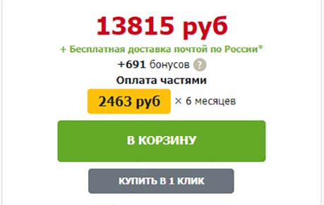 В карточке товара теперь есть цена (выделена желтым) для оплаты 6-ю равными частями в течение полугода.