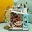 Румбокс «Сделайсам» лофт Доры - это набор для постройки миниатюрных двухуровневых апартаментов современного стиля. Он выполнен в мягких пастельных тонах, таких как розовый, синий и белый. Вы сделаете множество красивых деталей, таких, как цветы, виноградная лоза, винтовая лестница, уютный уголок с диваном и книжной полкой. Наслаждайтесь расслабляющим процессом «сделай сам» и почувствуйте восхищение своей работой!