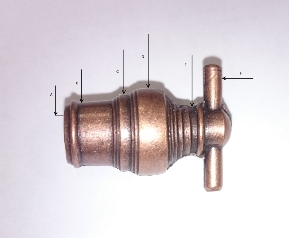 Мортира. Металл с покрытием под бронзу. Размер 18 мм. Количество 1 шт.