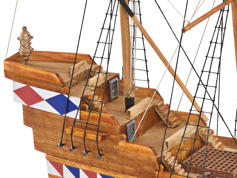 В 2016 году итальянская фирма Amati, лидер в мировой индустрии деревянных моделей парусников, начинает производство линейки простых моделей парусников для детей. Эта линейка имеет своё символическое название: "Первый шаг". И это действительно так. Деревянная модель галеона имеет уже готовый цельнодеревянный корпус из двух симметричных половинок, вырезанные лазером киль, гальюн и марсовые площадки. На палубу вы поставите две пары крохотных пушек, шпиль, трапы, решетку, кормовой фонарь, подвесите пару якорей. Затем модель будет расти вверх с помощью мачт, рей и нитей такелажа. Завершают деревянную модель галеона подставка и большой флаг. При желании вы можете сделать паруса, для этого есть ткань и выкройки.