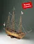 Традиционный наборный корпус собирается из вырезанных киля и шпангоутов, а затем обшивается начерно липой и начисто рейками ореха. Настил палубы дается отдельным рейками светлой танганики. В наборе большое количество полноценных пушек на лафетах. На палубах устанавливается двухкамерная помпа, шпиль, трапы, деревянные наборные решетки, штурвал, нагельные планки и т. д. Модель корабля из дерева имеет красивый транец с литыми декорациями. Носовая фигура в виде единорога дана позолоченой.