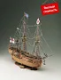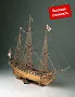 Сборная модель корабля из дерева имеет традиционный наборный корпус собирается на пятнадцати шпангоутах, а затем обшивается начерно липой, а чистовая обшивка выполняется из ореха, а пояс по пушечным портам - из желтого самшита. Настил палубы дается отдельным рейками светлой танганики. В контраст с палубой идут фальшборта и переборки, обшиваемые темными ореховыми реечками. Небольшое количество пушек освобождает от необходимости сложной операции по прорезанию пушечных портов в корпусе. Все пушечные порты расположены над палубой, поэтому при их прорезке сверху ничего не загораживает. Это дает еще одно преимущество - на своей судомодели вы будете применять только полноценные пушки на станках.