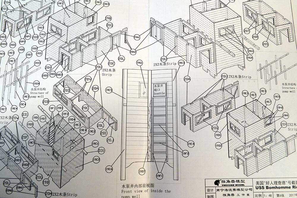 [UN02-1B] Интерьер для сечения Bonhomme Richard, версия самшит Масштаб 1:48