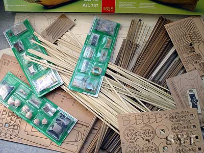 Для изготовления рангоута даны круглые заготовки диаметром от 3 до 14мм. В наборе не дана ткань для парусов, но даны их выкройки и схемы проводки снастей на тот случай, если вы захотите поставить на модель паруса. Инструкция и чертежи на 12 больших страницах и дадут опытному моделисту достаточную информацию для постройки этого шедевра.