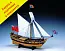 Японская фирма Woody Joe предлагает вам сделать модель этой яхты в 64-м масштабе. Традиционную наборную схему сборки корпуса японцы улучшили, выполнив киль из массива дерева, а не из фанеры, выполнив на шпангоутах, штевнях и киле всевозможные отметки, сильно помогающие при позиционировании деталей друг относительно друга. А на носовых оконечностях широких фальшбортов даже нанесены поперечные надрезы, чтобы заготовки лучше гнулись. Обшивка корпуса одинарная, выполняется из светлых реек. Причем в инструкции показаны этапы обшивки, а для особенно критичных реек даны чертежи, как их изгибать.