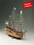 Крупные пушечные порты сечением 12х13мм имеют крышки не из металла, как в более дешевых моделях, а составные, из дерева, хотя имеются и интересные полупорты, расположенные почти у самой ватерлинии. Вооружение модели состоит из восьми полноценных пушек на станках и десяти отличных фальконетов на действующих поворотных вертлюгах. Из других достоинств модели следует отметить крупный брашпиль с запорным механизмом, двухкамерную помпу, невысокий коренастый шпиль, большой штурвал, деревянную шлюпку и металлический кормовой фонарь с цветными вставками. В кранбалках для подъема якорей используются настоящие шкивы. На мачтах модели делаются как вулинги, так и фиши.