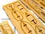 В данной модели корпус корабля делается составным, линия стыка горизонтальная. Это обусловлено тем, что модель парусника довольно большая и даже корпус не пройдет в горлышко бутылки. Сам корпус собирается послойно из заранее вырезанных лазером деталей. Далее обводы корпуса выводятся надфилями и наждачной бумагой по прилагаемым шаблонам. Палуба выполняется из деревянных деталей, с нанесенной разметкой и готовыми отверстиями. Особенностью данной модели можно назвать то, что якоря также деревянные и уже вырезаны лазером. Для изготовления рангоута прилагаются деревянные заготовки квадратного сечения, которым нужно шкуркой придать круглое сечение. И это является первым из двух недостатков модели. Зато все отверстия в мачте и рее изначально уже сделаны, что исключает риск расколоть заготовку при сверлении.