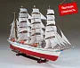 В этой сборной модели корабля традиционно используются хвойные породы дерева, что обеспечивает приятный аромат при их обработке. Своеобразно выполнен и минимальный декор корабля – на корме каждый элемент (даже полумесяц) даны отдельными литыми металлическими деталями с хорошей проработкой мелких элементов, а гальюн украшает фототравление и литая носовая фигура льва. Вооружен Half Moon четырьмя полупушками на нижней палубе и двумя фальконетами. К сожалению, в модели есть и недостатки: литые шпиль и помпу лучше сделать из дерева, а шлюпку, которую предлагается сделать методом бутерброда, лучше заменить на шпангоутную. Для рангоута модели даны круглые заготовки разного диаметра, для такелажа нити трех типоразмеров. Традиционно для Woody Joe блоки и юферсы даны пластиковыми, весьма достойного качества. Завершают модель отпечатанные на ткани паруса, флаги и массивная подставка и названием корабля. Приятной постройки!