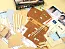В наборе вы найдёте уже готовые деревянные детали для каркаса и тонкие пластины из дерева красивого тёмного оттенка, для чистовой облицовки дома. Окна и двери, слишком мелкие для того, чтобы сделать их из дерева (детали для них получились бы очень тонкими и могли бы поломаться при транспортировке), имитируются с помощью напечатанных на бумаге деталей. На бумаге же напечатаны шторы и флажки для входа. Крыша, покрытая черепицей, изготавливается с помощью деревянных реек специальной формы. Ко всему прочему, вы найдёте в коробке наждачную бумагу и материал для урашения основания. Само основание и табличка также есть в комплекте.