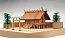 Японская фирма Woody Joe предлагает вам сделать небольшую модель-диораму японского религиозного центра. Проект состоит из нескольких элементов: здания буддийского святилища, входных ворот, забора, пары деревьев и квадратного основания. Здание святилища стоит на деревянных сваях, как будь-то парит в воздухе. Традиционно вокруг здания есть терраса, по бокам две мощные колонны-столба, а на крыше, поперек конька расположены 10 коротких толстых бревен – кацуоги, которые типичны для японской архитектуры.