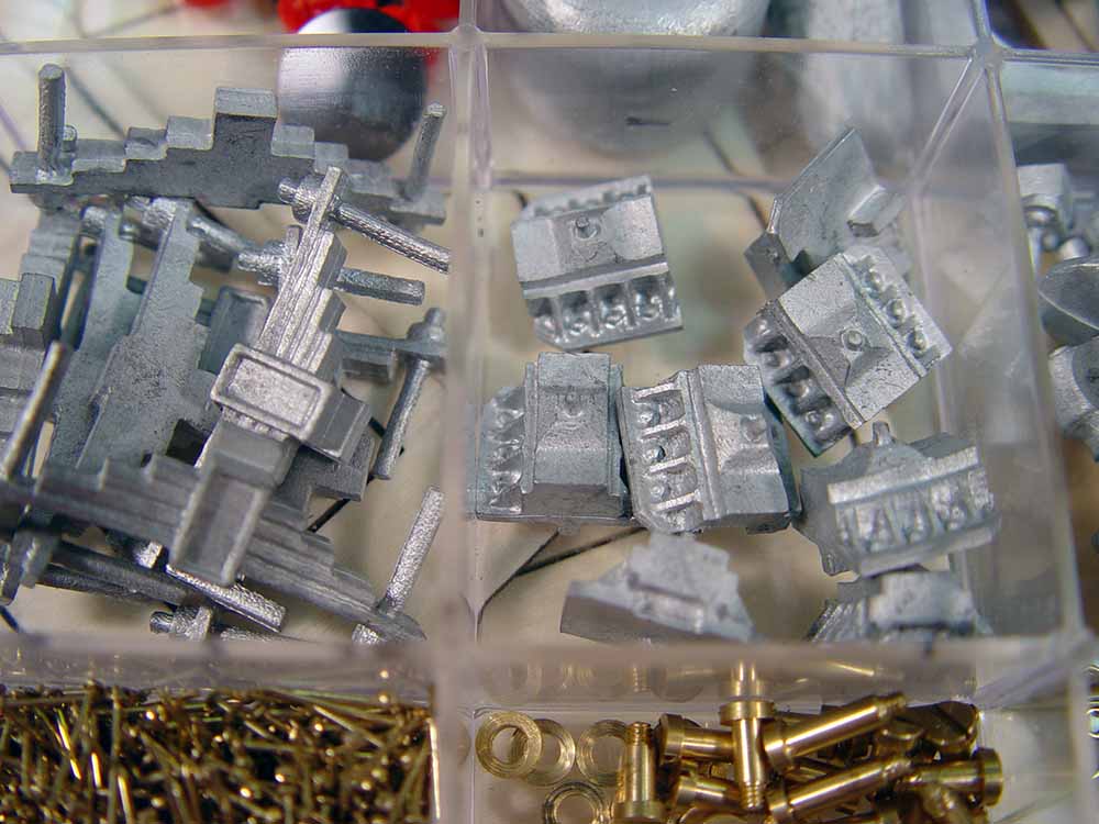 Внушительная коробка размером 60*40*10 см, в которой находятся семь фанерных листов с уже вырезанными лазером каркасными деталями, три прозрачных бокса с металлическими (литые из белого металла, точеные из латуни, оси, винтики, шайбочки и гайки) деталями, уже готовые колеса, коробка с латунными листами для обшивки котла, фототравленные детали обшивки кабины (с уже вытравленными элементами крепежа), массивная балка шасси, камни для имитации угля в тендере, 26-страничная инструкция по сборке на русском языке. Каркас паровоза, котел, кабина машиниста и тендер собираются как конструктор из уже готовых, вырезанных лазером каркасных деталей. Все готовые узлы каркаса подтачиваются, снимаются необходимые фаски и зашкуриваются. Далее каркас котла обшивается латунными пластинами, которые приклеиваются не только на клей (цианакрилатный), но и дополнительно фиксируются миниатюрными латунными гвоздиками. Шляпки этих гвоздей (а они расположены по периметру обшивочных листов) сразу же выполняют функцию имитации заклепок котла. Вся обвеска котла (трубы, фонарь, передняя крышка) дана отливками из белого металла. Трубопроводы делаются из латунной проволоки различного диаметра. А вот с кабиной машиниста немного по-другому. В отличие от мощного каркаса котла, каркас кабины выполняется из тонких ажурных деревянных деталей и имеет настил крыши из деревянных реек сечением 1х5 мм. Передняя и боковые стенки кабины даны фототравленными латунными листами с уже вырезанными окнами и другими отверстиями. Как и положено качественным моделям железнодорожной техники, в кабине машиниста выполнены все органы управления, трубопроводы, рычаги и запоры топки. Вся конструкция ставится на три основные колесные пары. А вот затем начинается самое интересное: сборка сцепок, буферов и, конечно же, подвижных элементов ходовой части. Ради того, чтобы это собрать и увидеть, как слаженно работает сделанная вами сложная система тяг, шатунов и поршней, стоит потратить не один день! Вся ходовая часть паровоза выполнена подвижной, собирается из литых металлических деталей, скрепленных между собой и с колесами с помощью винтов, гаек и шайб. В сборочной инструкции этому этапу отведено более двадцати пошаговых фотографий. Фирма OcCre прилагает к модели инструкцию по сборке на русском языке. Колея 45 мм (стандарт G-45).