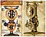 Устройство этих часов основывается на набросках, выполненных Леонардо. В качестве источника энергии здесь выступает груз из нескольких металлических монет. Для равномерности хода задействован горизонтально вращающийся маятник. Точность хода задается весом и положением грузиков маятника. Для сборки модели не требуется ни клея, ни красок, ни батареек.