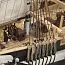 Новинка 2018 года от испанской фирмы OcCre – модель корабля HMS Terror имеет традиционный наборный корпус и двойную обшивку из реек рамина и красного дерева. Из особенностей модели парусника стоит сразу же отметить настил палубы: он выполнен как продольно, так и по диагонали. В остальном модель делается по стандартной технологии: готовые фальшборта, первая обшивка, чистовая обшивка, толстенные привальные брусья для сопротивления льду, палубная мелочевка из дерева и металла, три литых металлических шлюпки, 6 (!) якорей, штурвалы, колокольня. Для рангоута даны круглые заготовки разного диаметра, а для такелажа модели идут нити разного типоразмера, блоки и юферсы из самшита, довольно подробные схемы проводки снастей. Завершают модель готовые паруса, подставка из киль блоков и кормовой флаг. Инструкция по сборке на русском языке.