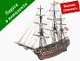 Огневая мощь корабля состоит из точеных латунных пушек и фальконетов. Из металла сделаны пушечные станки и пушечные порты, а латунные цепи, заготовки для решеток, якоря из черненного металла, литой искусный транец весьма высокого качества, лист фототравленного орнамента окон и носовая фигура добавляют модели реализма. Шлюпки модели этого корабля представляют собой маленькие проекты - каждая собирается по наборной технологии с полноценной обшивкой и изготовлением всей мелочевки. Сотни самшитовых блоков и юферсов ввязываются в нити четырех диаметров. OcCre обеспечивает модель корабля полным набором парусов и флагами.