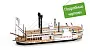 Поскольку сборная модель корабля плоскодонная, корпус у неё цельный, обшивается широкими светлыми рейками. В набор включены фототравленные буквы на борта, литая парадная лестница, множество окон, литые круги гребных колёс, четыре деревянных трубы — две больших и две маленьких, а также необходимые флаги. Для облегчения процесса сборки в наборе, помимо шести листов чертежей и подробной инструкции, присутствуют также детальные схемы и список деталей и материалов, с которым не составит труда определить нужную вам заготовку, рейку или же готовую деталь.О производителе