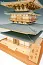 Модель практически полностью собирается из дерева. Все деревянные детали уже вырезаны и аккуратно разложены по пакетикам. Среди них вы найдёте не только бруски разных форм и размеров, но и решётки, опоры для крыши и тонкие резные декорации. Лестницы также даны уже готовыми, что избавит вас от утомительного вытачивания каждой отдельной ступеньки. Кроме того, в комплекте вы найдёте металлические детали шпиля, как литые, так и фототравленные. Пагода собирается поярусно; крыши выкладываются из целых, уже готовых пластин. Табличка с названием и детали основания также входят в комплект. Инструкция представлена огромным количеством подробных схем всех этапов постройки, с поясняющими надписями на японском языке.