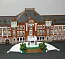 На сборном основании высотой около 3 см вам предстоит сделать из вырезанных лазером деталей каркас нескольких зданий вокзала, соединив их вместе. Лицевые стороны стен сделаны из красного дерева, поэтому их не надо красить под кирпич. А вот оконные переплёты и внешние обрамления дверей и оконных проёмов выполнены фототравлением из светлого металла, причем переплёты ставятся изнутри, получается объемная конструкция. Два огромных листа фототравления выполнены с японским безукоризненным качеством. И они впечатляют! Купола, чердачные окна, навесы, входные элементы – всё это дано металлическим литьём весьма достойного качества.