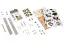 - Модельный нож, лезвия для ножа, надфиль, пинцет, три пластиковых зажима, миниатюрный шкурник, набор кисточек и наждачная бумага;