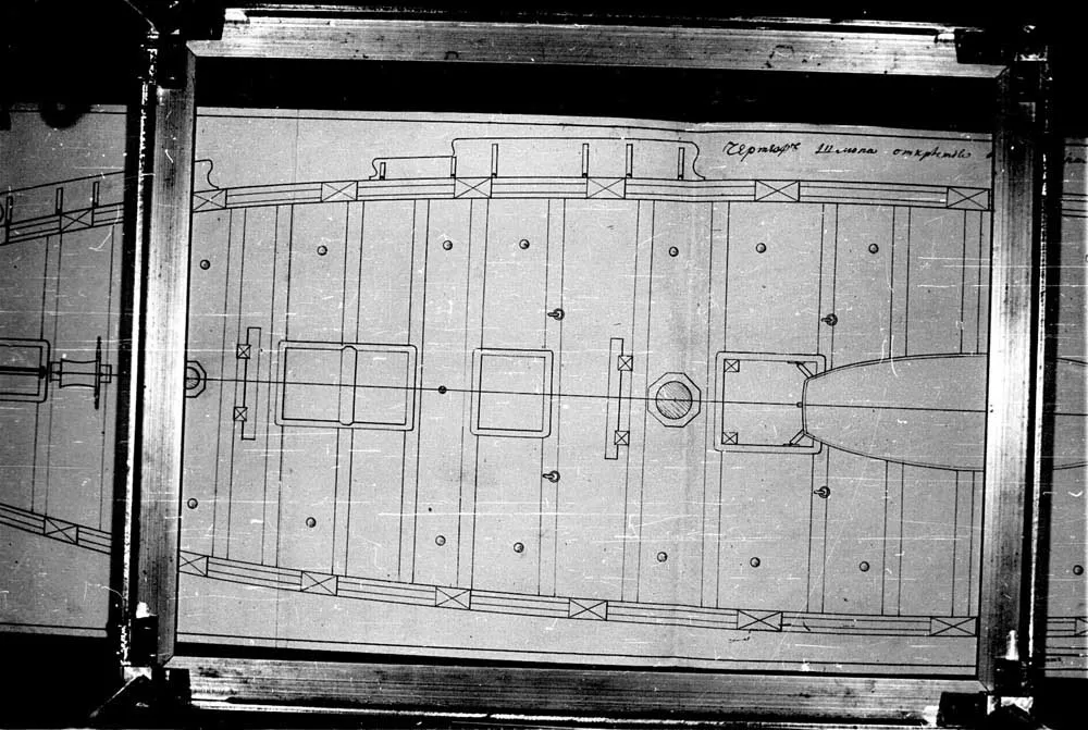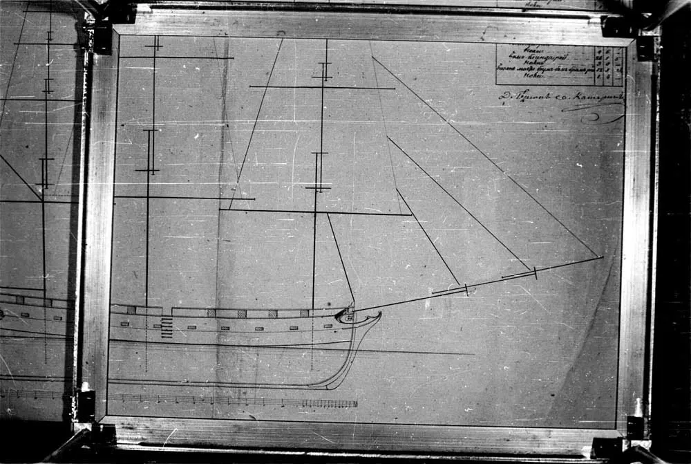 Чертеж шлюпа "Открытия". 1819 год. |  Чертеж шлюпа "Открытия". 1819 год. |  Чертеж шлюпа "Открытие" |