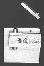 Опора имеет направляющую втулку с винтом M4 и гайкой для фиксации упора скольжения в рабочем положении, которая скреплена с опорой и основанием станка шурупами. Упор скольжения состоит из отрезка круглого стержня (около 10мм) и куска прямоугольной шины (толщиной 3-5мм). Прямоугольная шина закреплена в вырезе стержня небольшим винтом. Упор скольжения собирается окончательно и тщательно выравнивается и проверяется относительно параллельности оси станка.